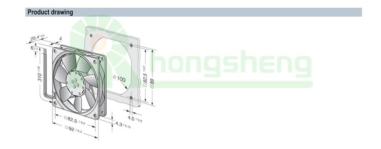 EBM-Papst 3414NH Fan, Axial, 12VDC, 92*92*25mm, 55.29CFM, 2.3W, 3000RPM