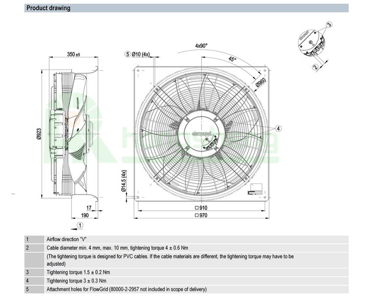 W3G800-LV05-36/F01 Ebm-papst EC Axial Fan 400V 3500W 1190RPM 18671CFM 800mm