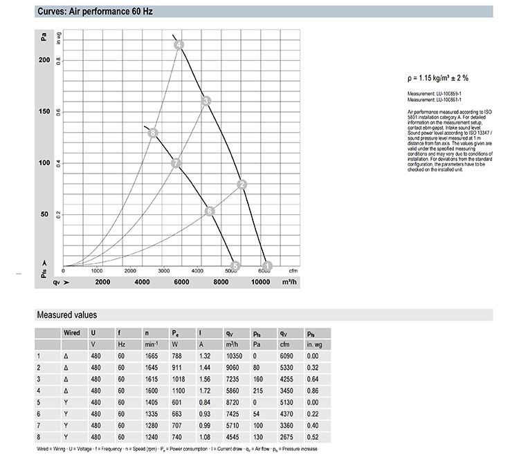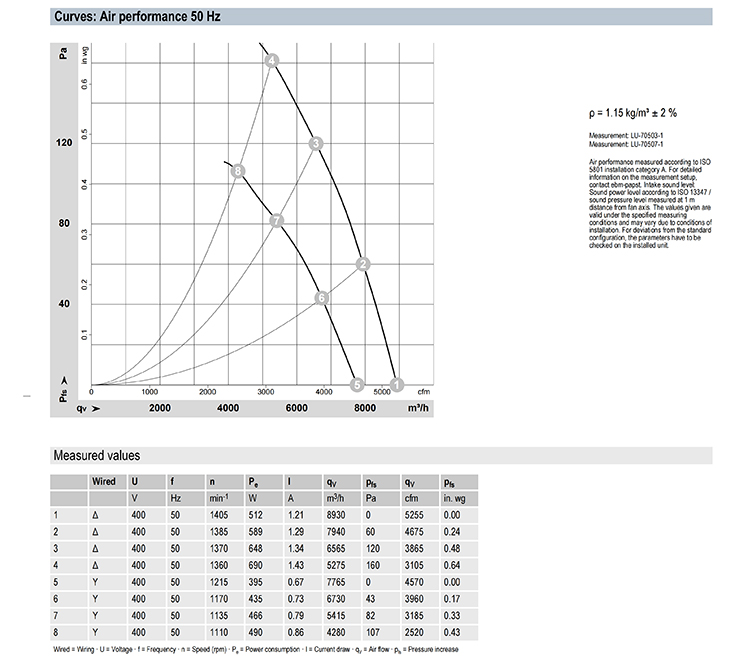 ml = max. load · me = max. efficiency · fa = running at free air · cs = customer specs · cu = customer unit |