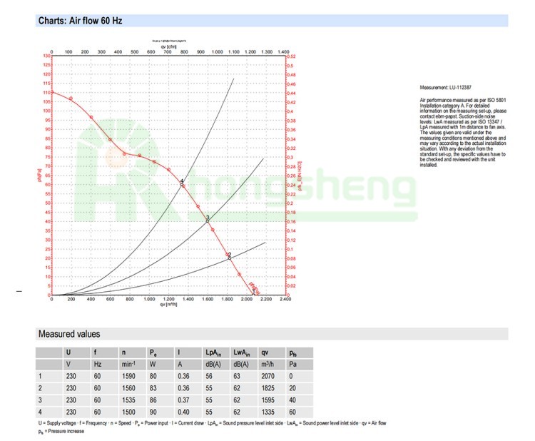 ml = max. load · me = max. efficiency · fa = running at free air · cs = customer specs · cu = customer unit