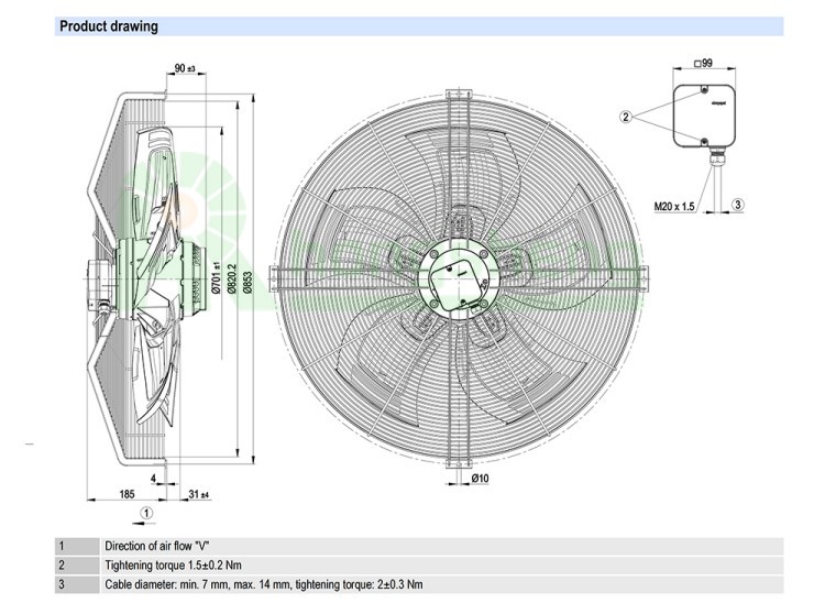 Strong 3-phase motor, massive airflow for high-power cooling systems.