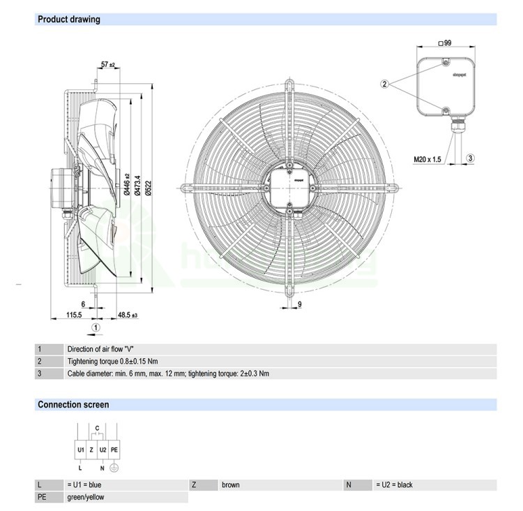 Ebm-papst S6E450-AU04-01/C01 Axial Fan for Evaporators