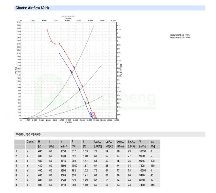 ml = max. load · me = max. efficiency · fa = running at free air · cs = customer specs · cu = customer unit |