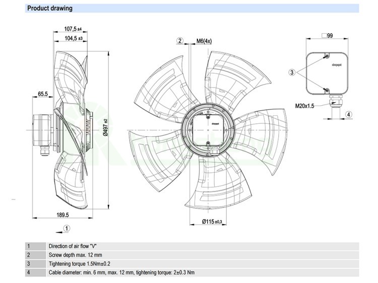 Ebm-papst A4D500-AJ03-01 Axial fans 400V, 1340RPM/1060RPM,710W/480W,