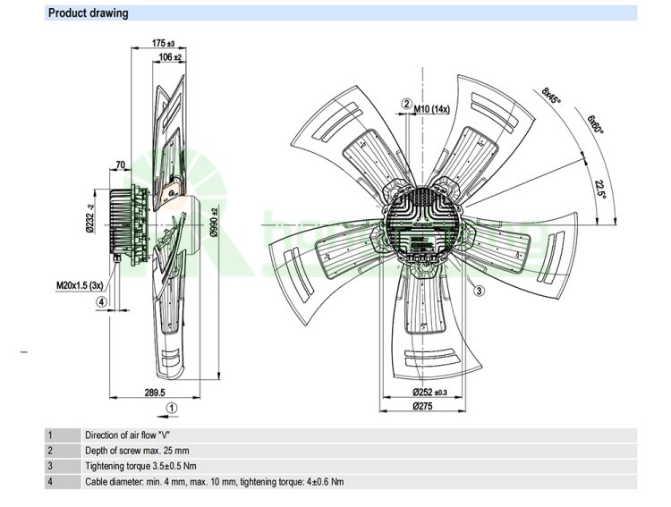 EBM-Papst A3G990-AZ02-01 Fan, Axial, 400V 990MM 2580W 960RPM 20588.23CFM