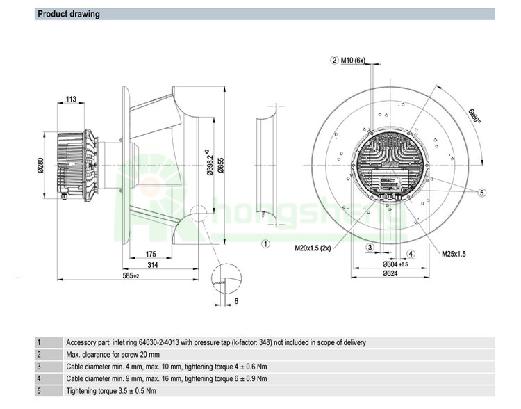ebmpapst R3G560-PC04-01 Backward Centrifugal Fan 400V 5000W 1760RPM EC Cooling Fan