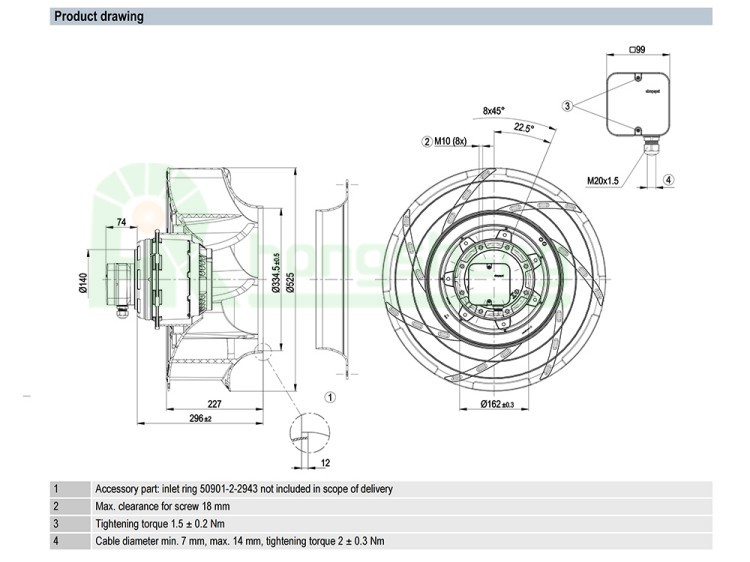 ebmpapst R4D500-RA01-06/S01 Centrifugal Fan 400V 1120W 1140RPM 5709CFM 500mm