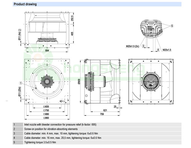 K3G800-AS07-01 Ebmpapst Centrifugal Fan 400V 11600W 1370RPM 800MM