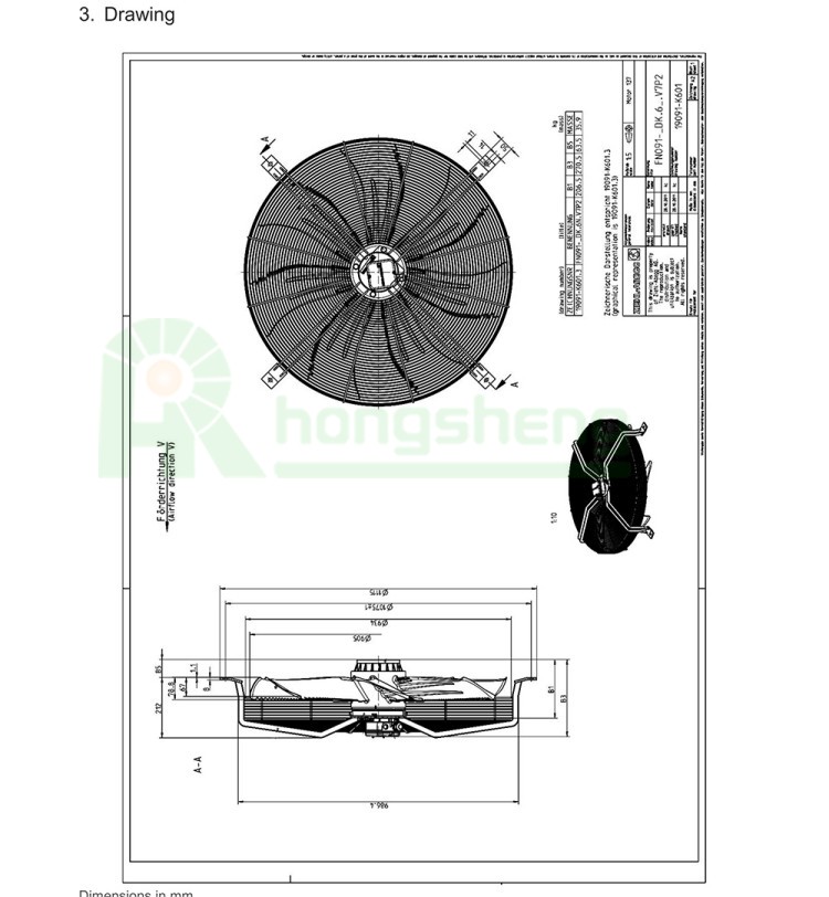 Ziehl-Abegg FN091-SDK.6N.V7P2 Axial Fan 400V 1050W 630RPM 15294CFM 910mm