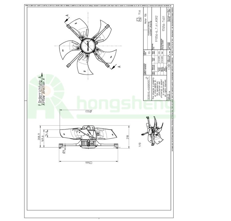 Ziehl-Abegg FF056-6DT.4I.A5R2 Axial Fan 400V 580W 1050RPM 5585CFM 560mm