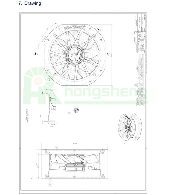 Ziehl-Abegg ZN045-6IL.BD.V7P3 Axial Fan 1~200-277V 210W 1100RPM 3118CFM 450mm