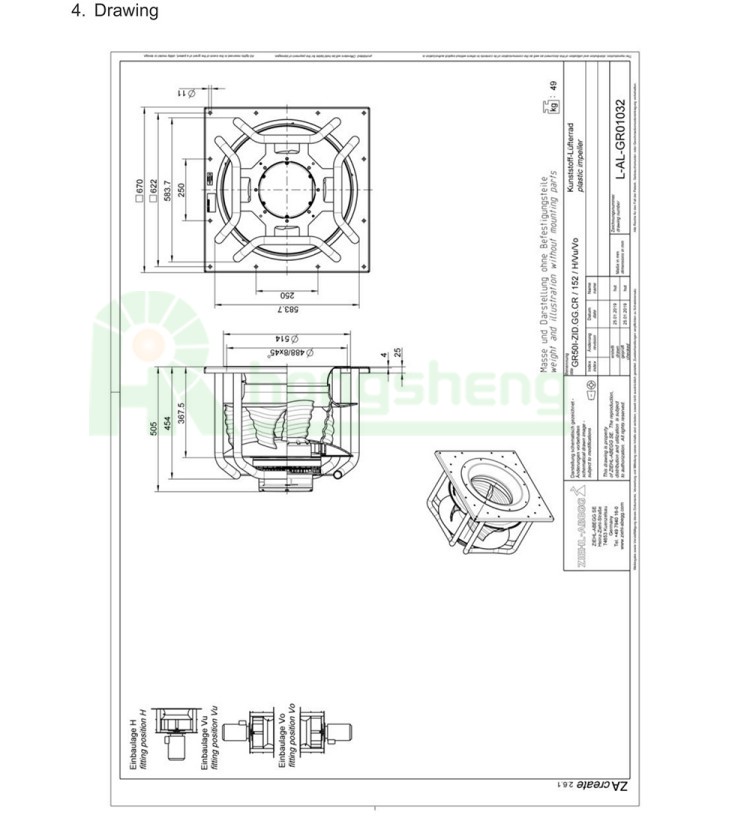 Ziehl-Abegg GR50I-ZID.GG.CR Centrifugal Fan 3~ 380-480V 3500W 1955RPM 8529CFM 500mm