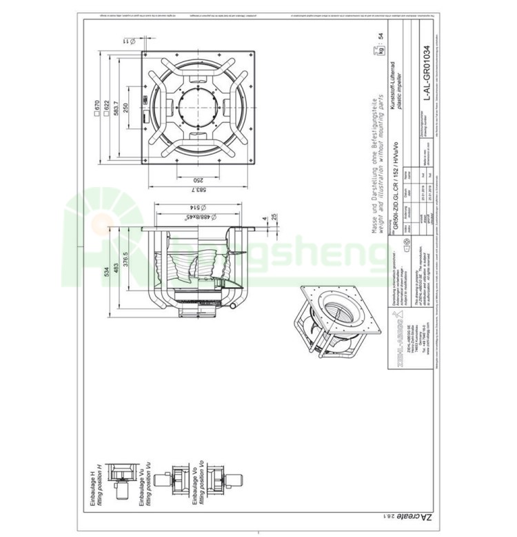 Ziehl-Abegg GR50I-ZID.GL.CR Centrifugal Fan 3~380-480V 4600W 2150RPM 9412CFM 500mm
