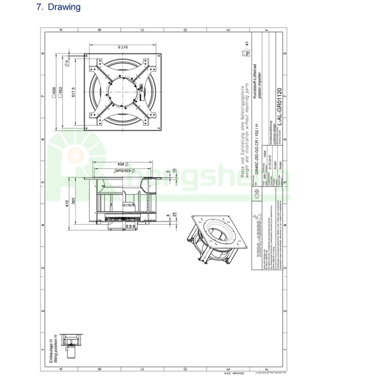 Ziehl-Abegg GR45C-ZID.GG.CR Centrifugal Fan 3~380-480V 5200W 2570RPM 7588CFM 450mm