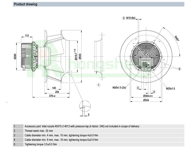 ebmpapst 450mm R3G450-PB24-01 Centrifugal Fans 400VAC 5250W 2600RPM 8A EC Fan