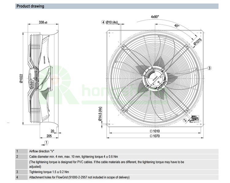 Ebm-papst W3G910-KU25-03/F08 Axial Fan 910MM,11929CFM,2550W,980RPM