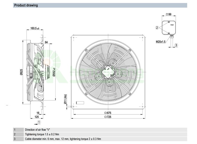 EBM-Papst W4D560-GR03-03 AC Fan Ball Bearing 480V 1420W 1640RPM 7100CFM Flange Mount