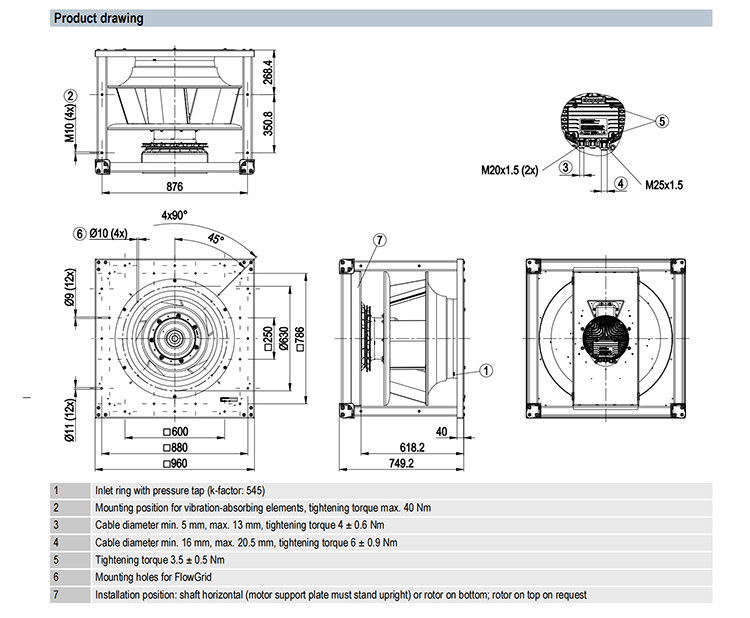 Ebm-papst 710mm K3G710-PV05-01 EC Centrifugal Fan 7.05KW 1430RPM 400VAC 10.7A