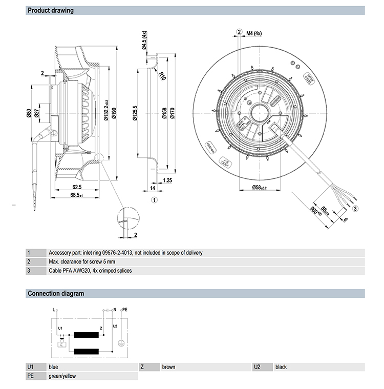 EBM-Papst R2E190-RA26-53 AC Fan Ball Bearing 230V 0.23A/0.29A 52W/65W 2350RPM/2550RPM Flange Mount