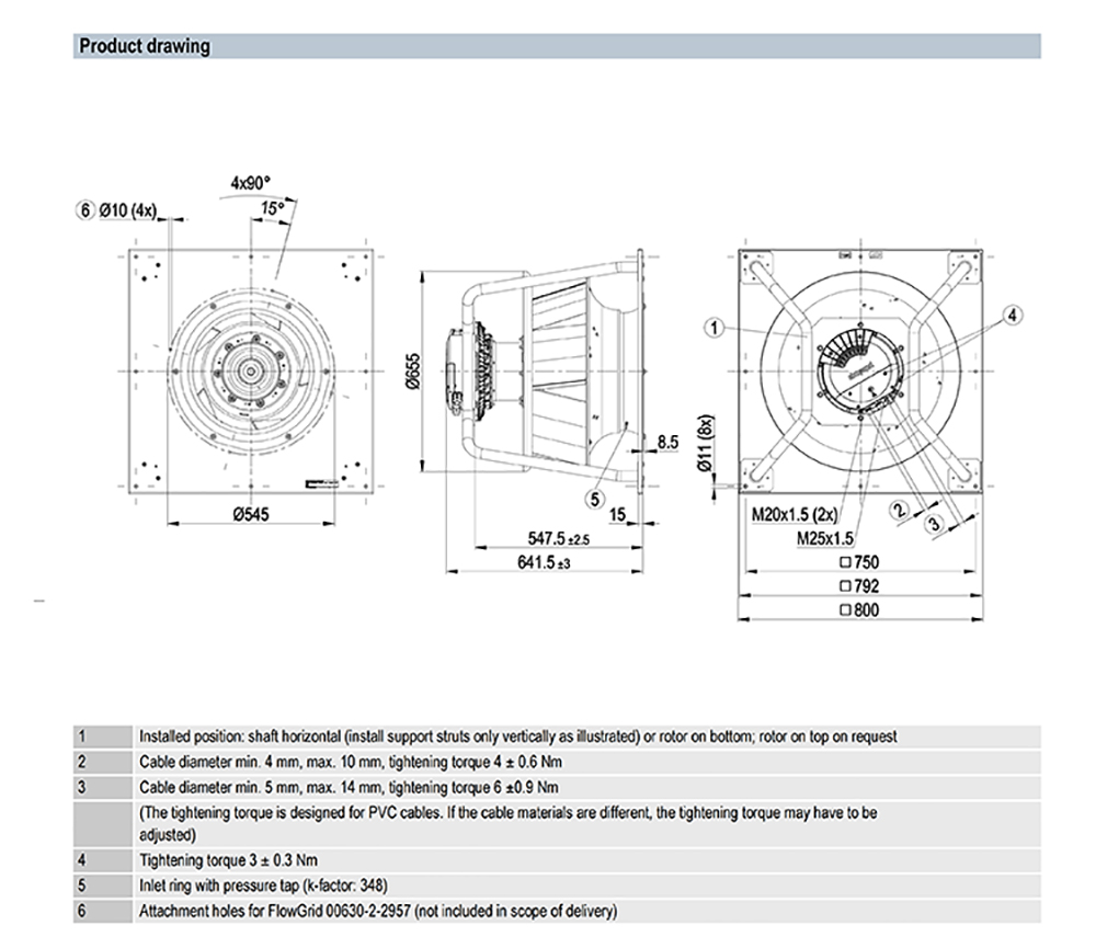 ebmpapst 560mm K3G560-PC10-N1 EC Centrifugal Fan 5.95KW 1860RPM 400VAC 9.2A