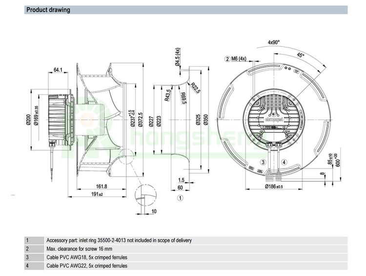 ebmpapst 355mm R3G355-RT01-I1 EC Centrifugal Fan 750W 3080RPM 230VAC 355MM