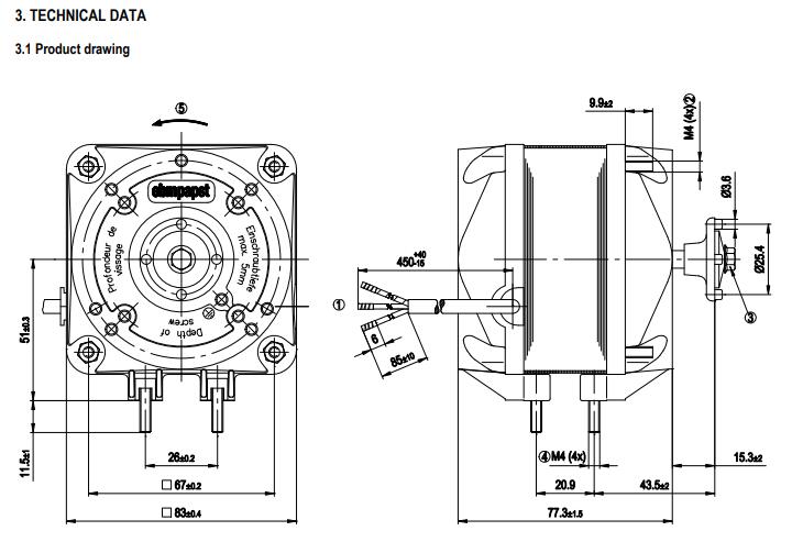 1) 3-phase,electronically commutated external rotor motor
