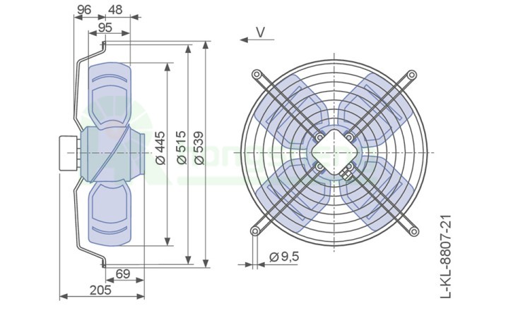 ZIEHL-ABEGG Fan suction, FB045-4EK.4F.V4P Ø450 mm, 1~230 V,