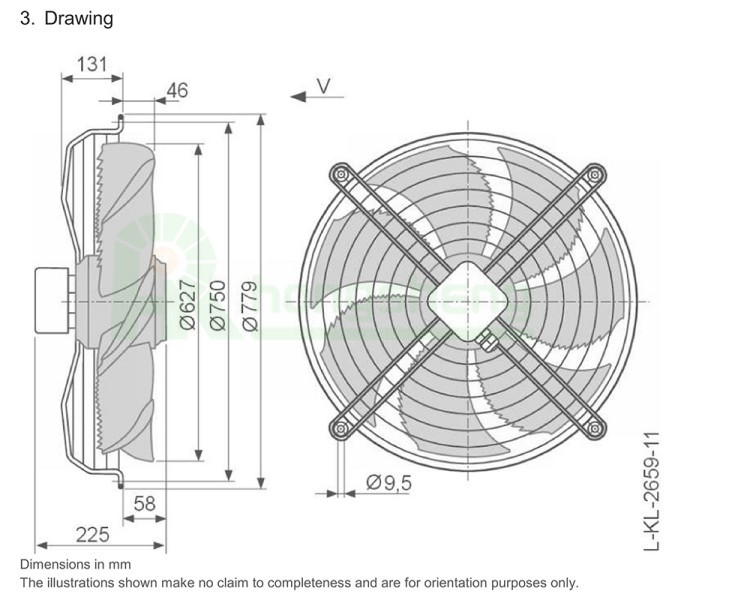 Ziehl-Abegg FN063-6EK.4I.V7P1 Axial fan 230V 10200m³/h 680W 870RPM 630MM