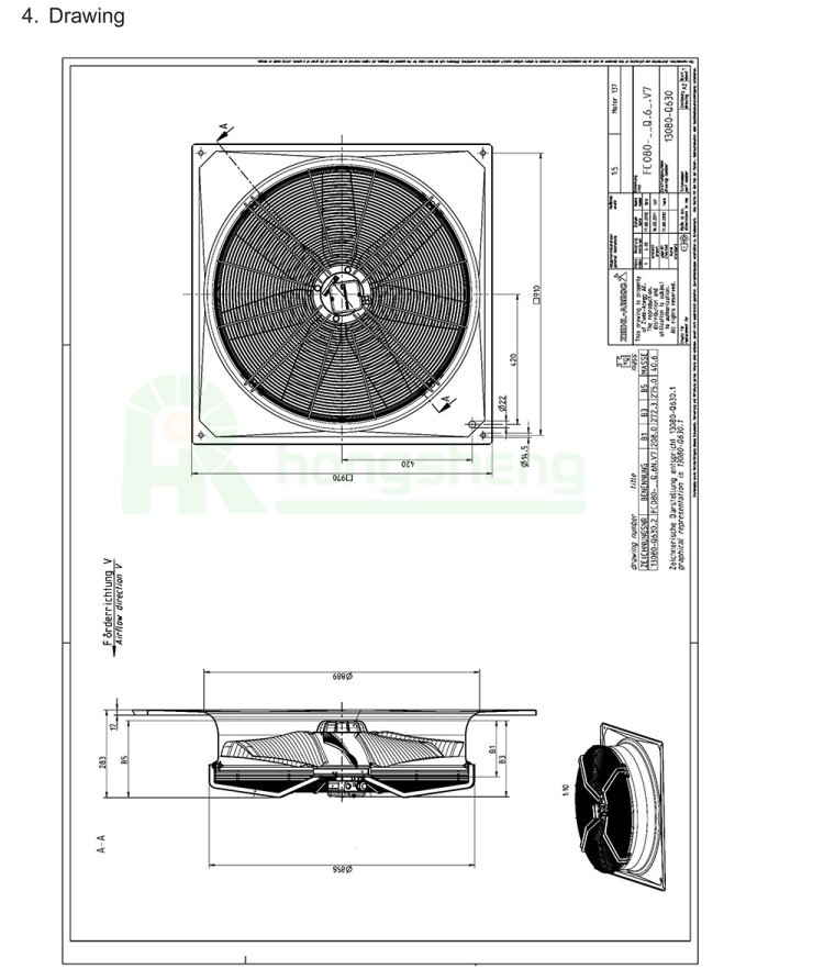 Ziehl-Abegg FC080-6DQ.6N.V7 Axial Fan 800MM 3~230/400V 22500m³/h 1900W 990RPM