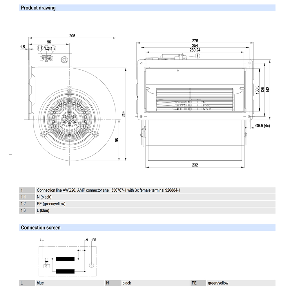 EBM-Papst D4E146-AA07-25 AC Centrifugal Fan 230V 128W 0.54A 1100RPM