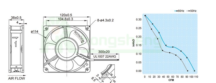 FULLTECH UF12A23BTH 120x120x38mm AC Fan for UPC Power Supply Units