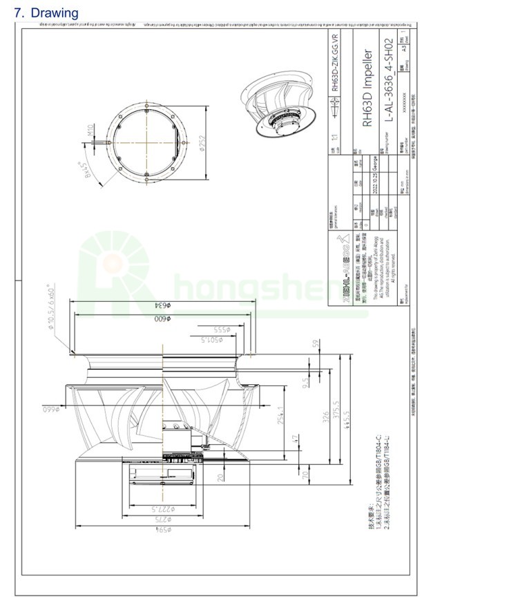 ZIEHL-ABEGG RH63D-ZIK.GG.VR Centrifugal Fans 400V 3500W 1496RPM 630MM