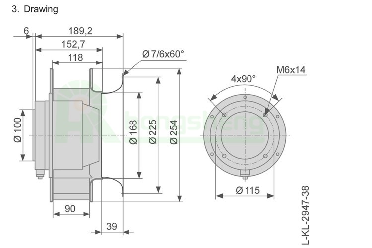 ZIEHL-ABEGG RH25M-2DK.3F.1R Centrifugal Fans 3~230-400V 520W 3370RPM 250MM
