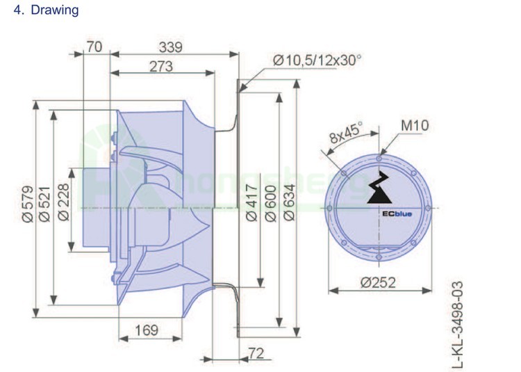 ZIEHL-ABEGG RH56V-ZIK.GG.VR Centrifugal Fans 3`380-480V 2600W 1410RPM 560MM