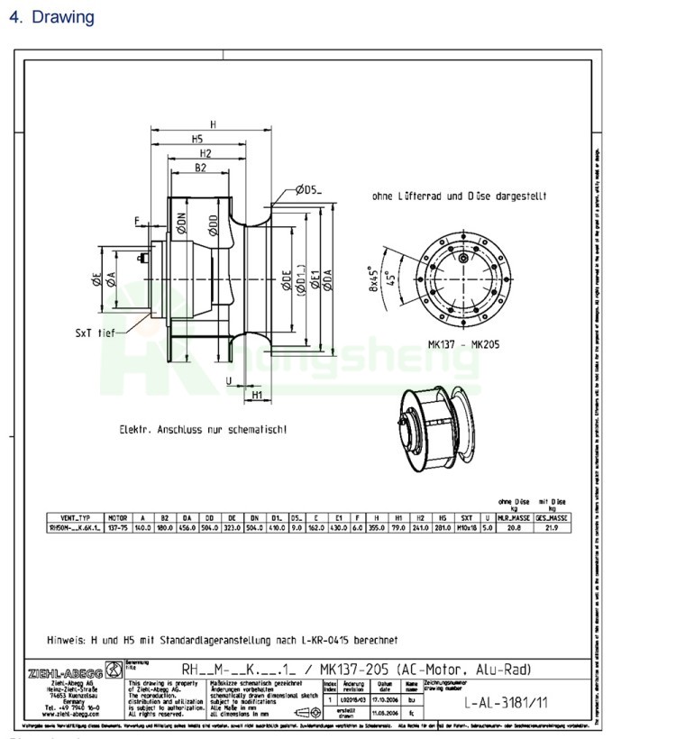 ZIEHL-ABEGG RH50M-4EK.6K.1R Centrifugal Fans 230V 1300W 1350RPM 500MM