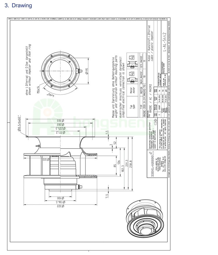 ZIEHL-ABEGG RH28C-2DD.3I.CR Centrifugal Fans 400V 1000W 3170RPM 280MM