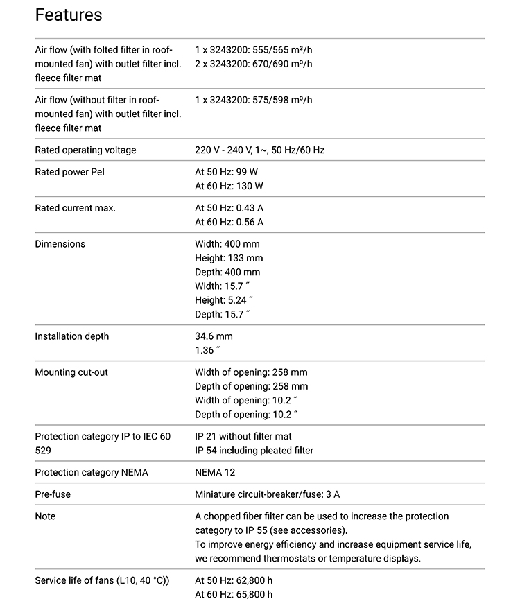 Rittal SK3140.100 Roof-mounted Fan for Cabinet Ventilation and Cooling